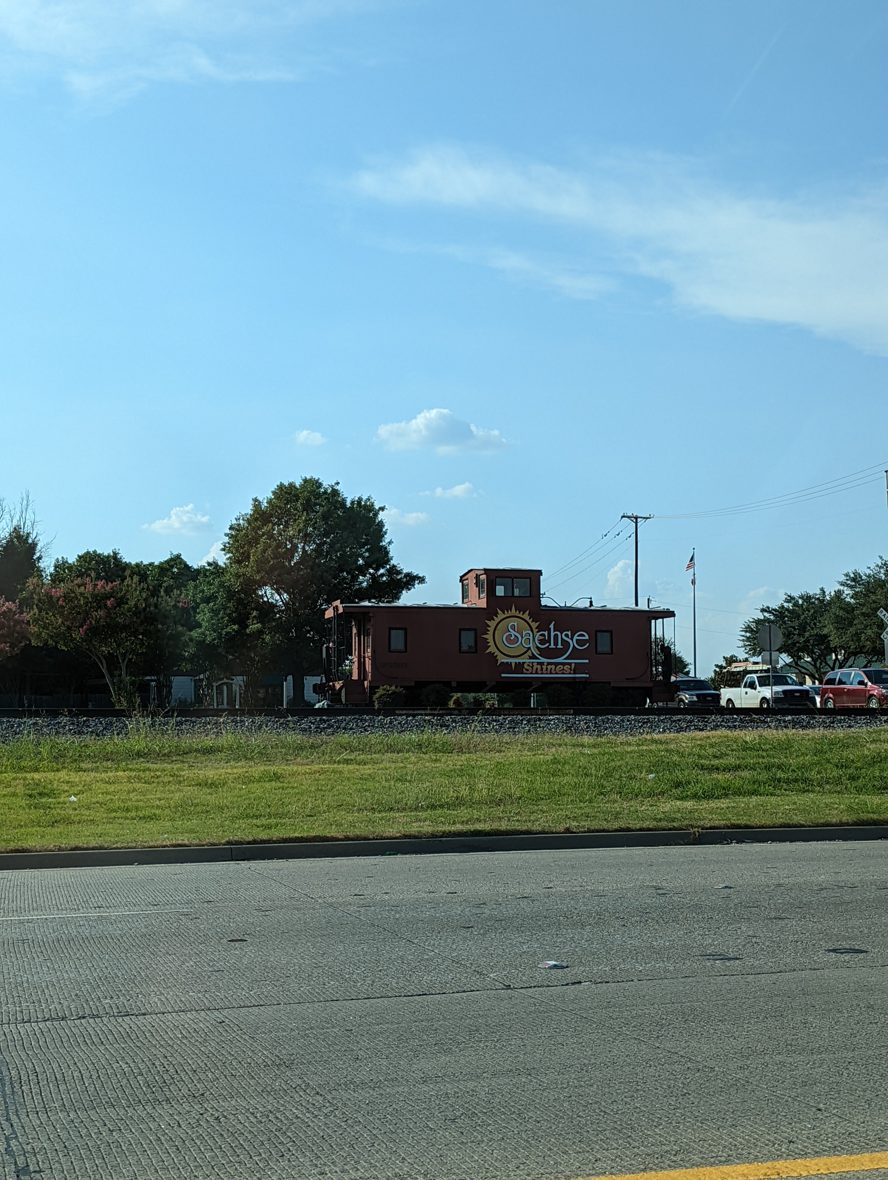 This caboose was retired by Union Pacific Rail Road and moved to this location. It is currently run operated and maintained by the Sachse Historical Society and is open for visitors on select days, see their website for details.