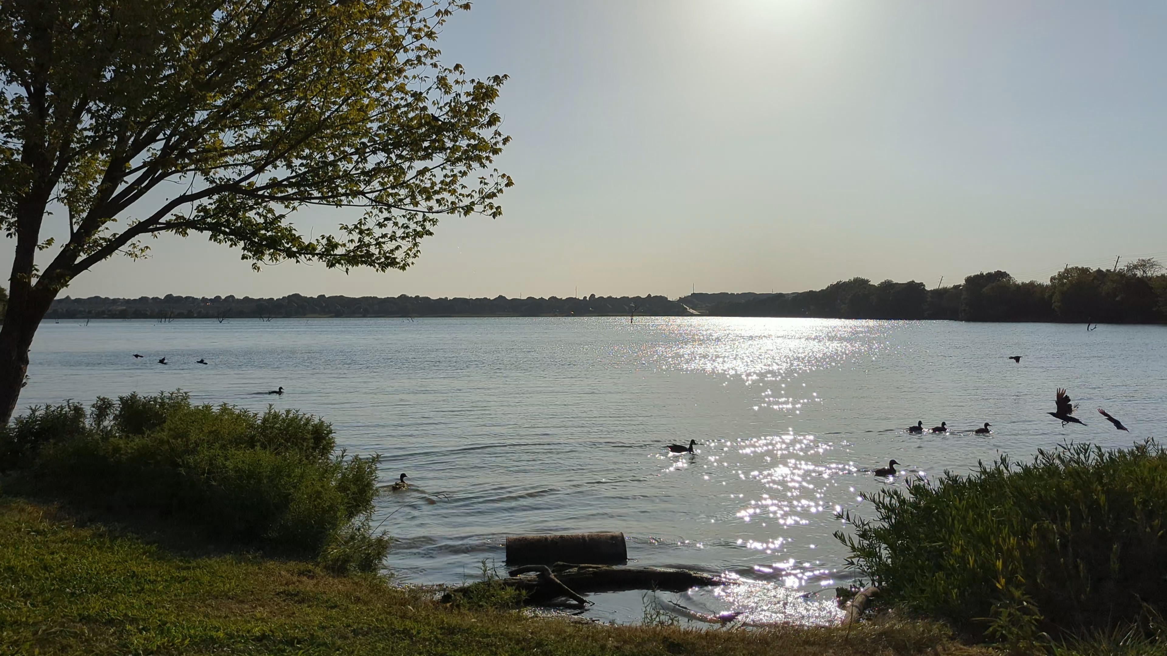 Keywords: outdoor water lake park grass tree ducks lakeside