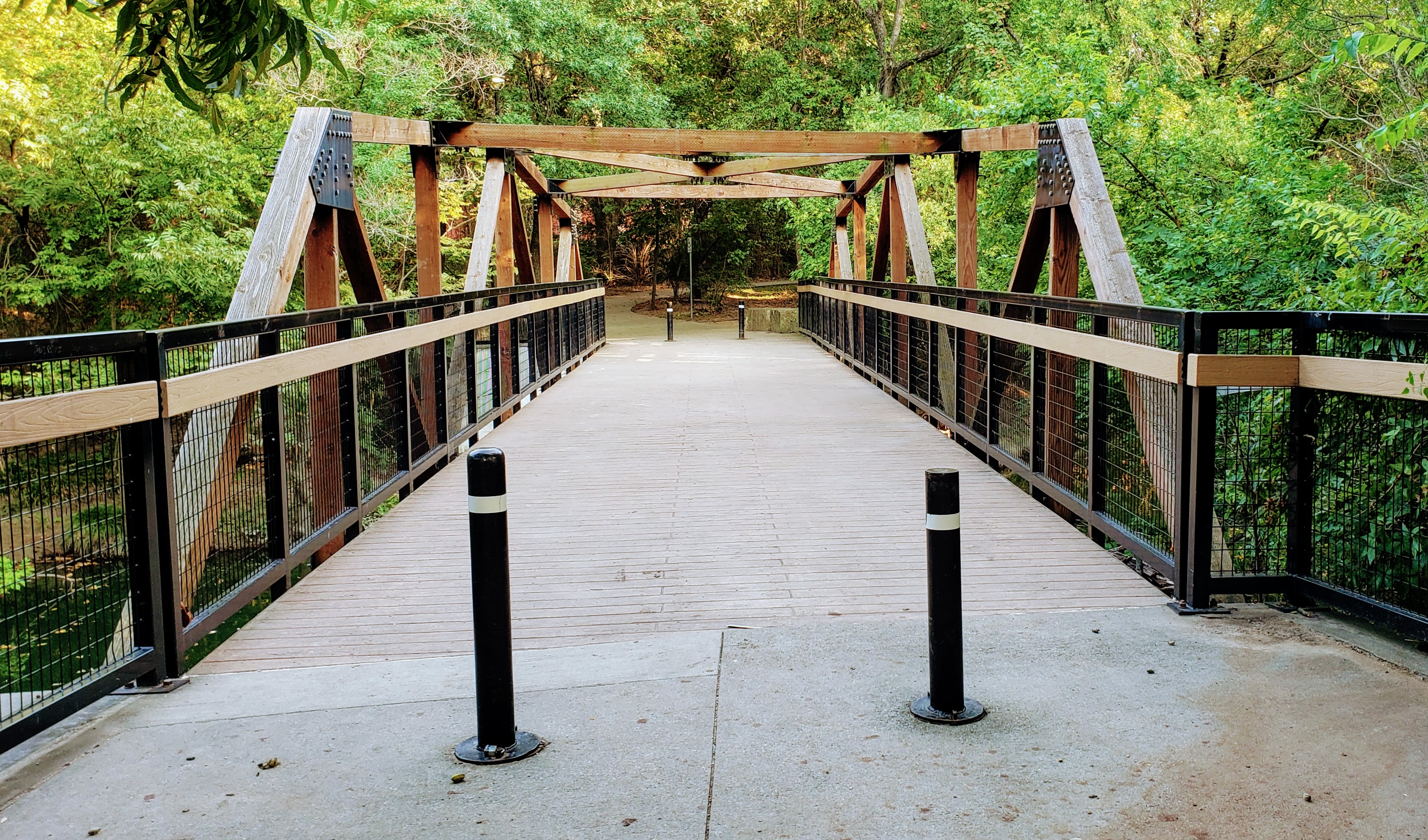 While the main attraction at Prairie Creek Park is the waterfall, there are a number of other spots nearby that are great as well including this bridge that spans across the creek. When I visited, the water below appeared to have blue dye to make the water a vivid blue against the green trees.