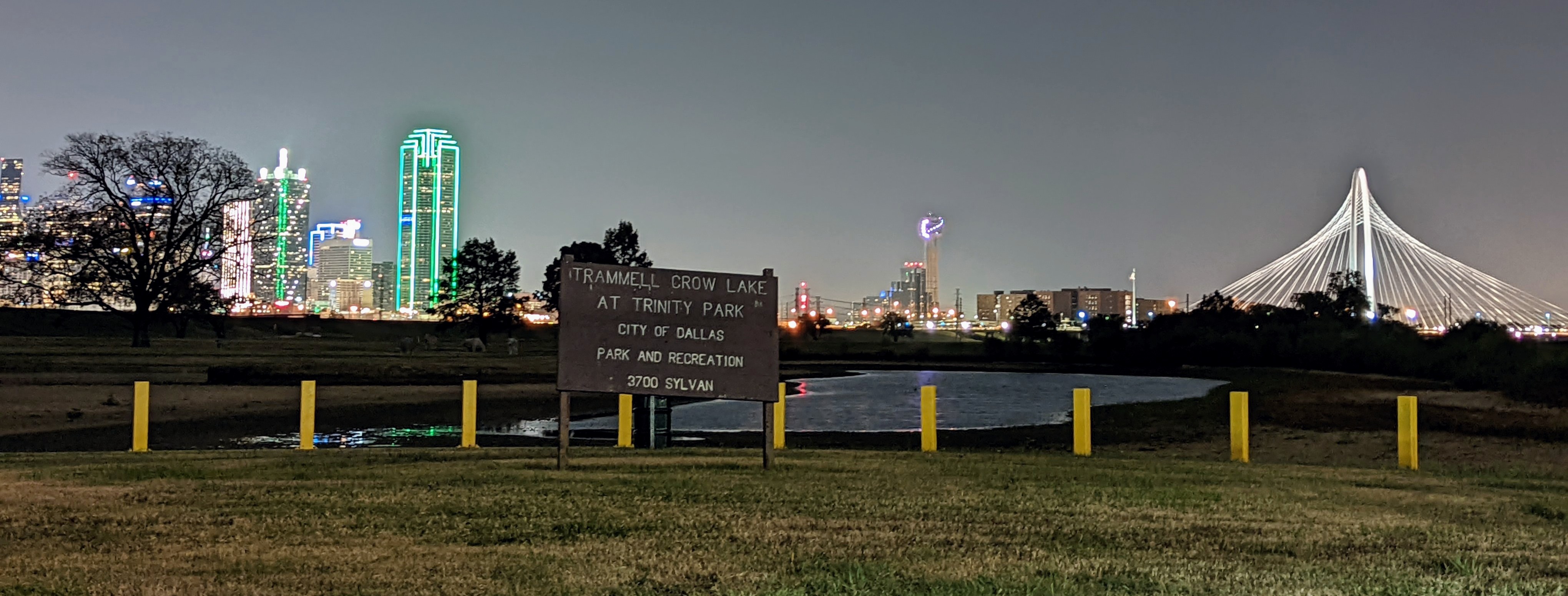 This park is in the Dallas floodway and may not be accessible during or after rain storms. The parks unique location gives it a tranquil vibe with an urban backdrop as the downtown skyscrapers peek out from above the levee.